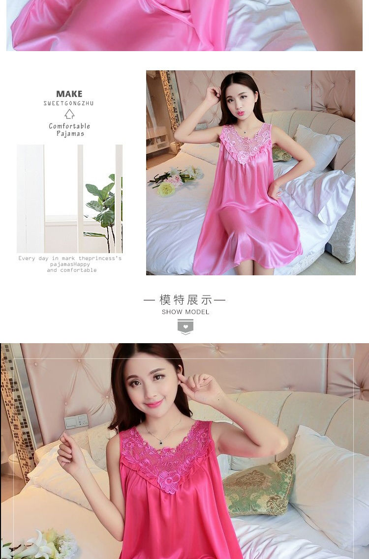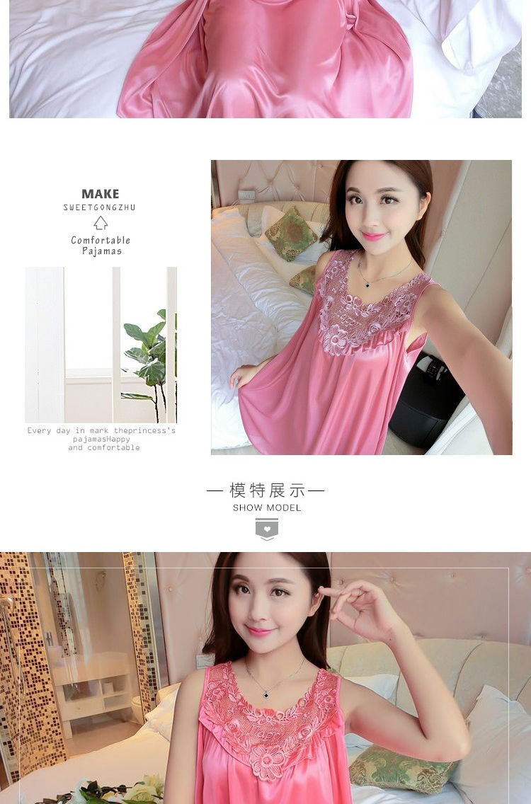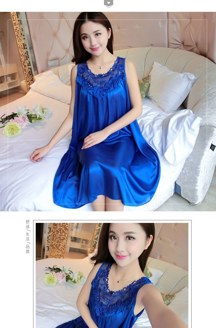 商品名稱:冰絲睡裙女蕾絲仿真絲睡衣夏絲綢性感吊帶裙薄大碼家居服