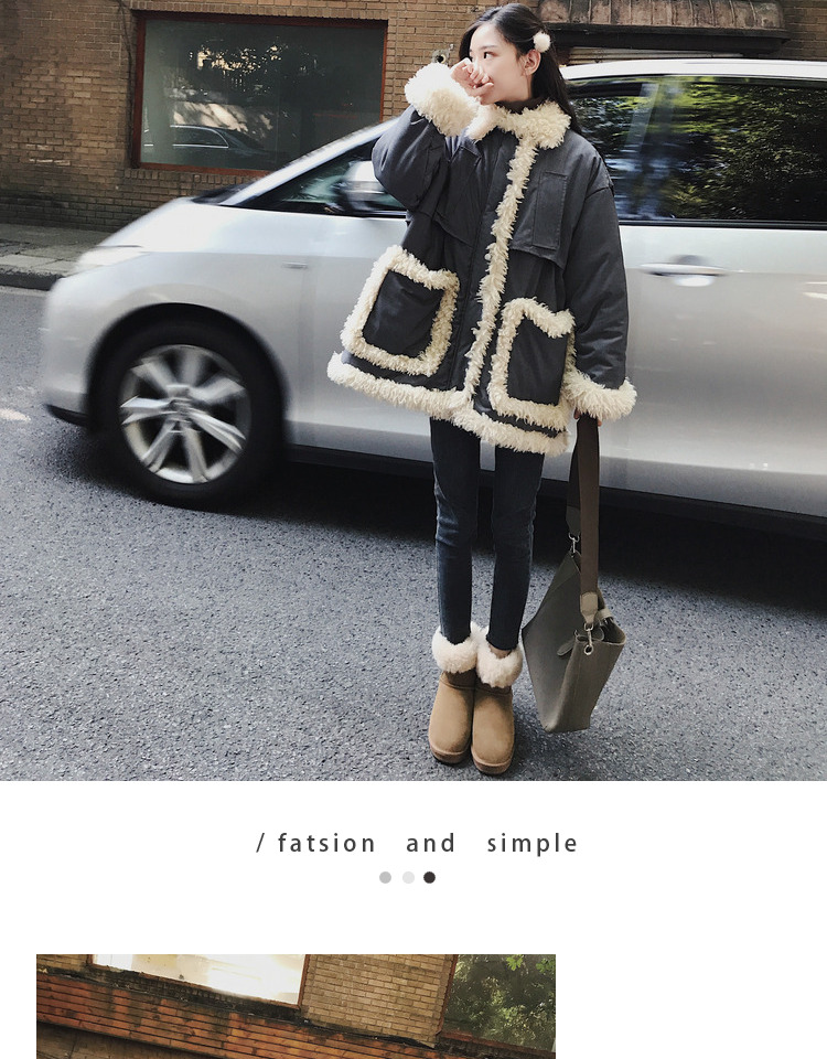 商品名稱:ins超火羽絨棉服女冬新款韓版學(xué)生中長款棉襖羊羔毛拼接外套