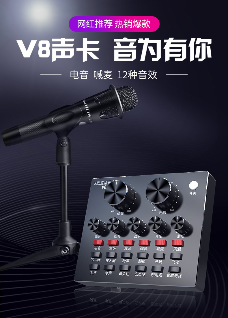 商品名稱:雅蘭仕 V8聲卡套裝手機(jī)喊麥通用快手臺式機(jī)電腦主播電容麥克風(fēng)直播設(shè)備全套網(wǎng)紅全民k歌跑調(diào)神器唱歌專用話筒