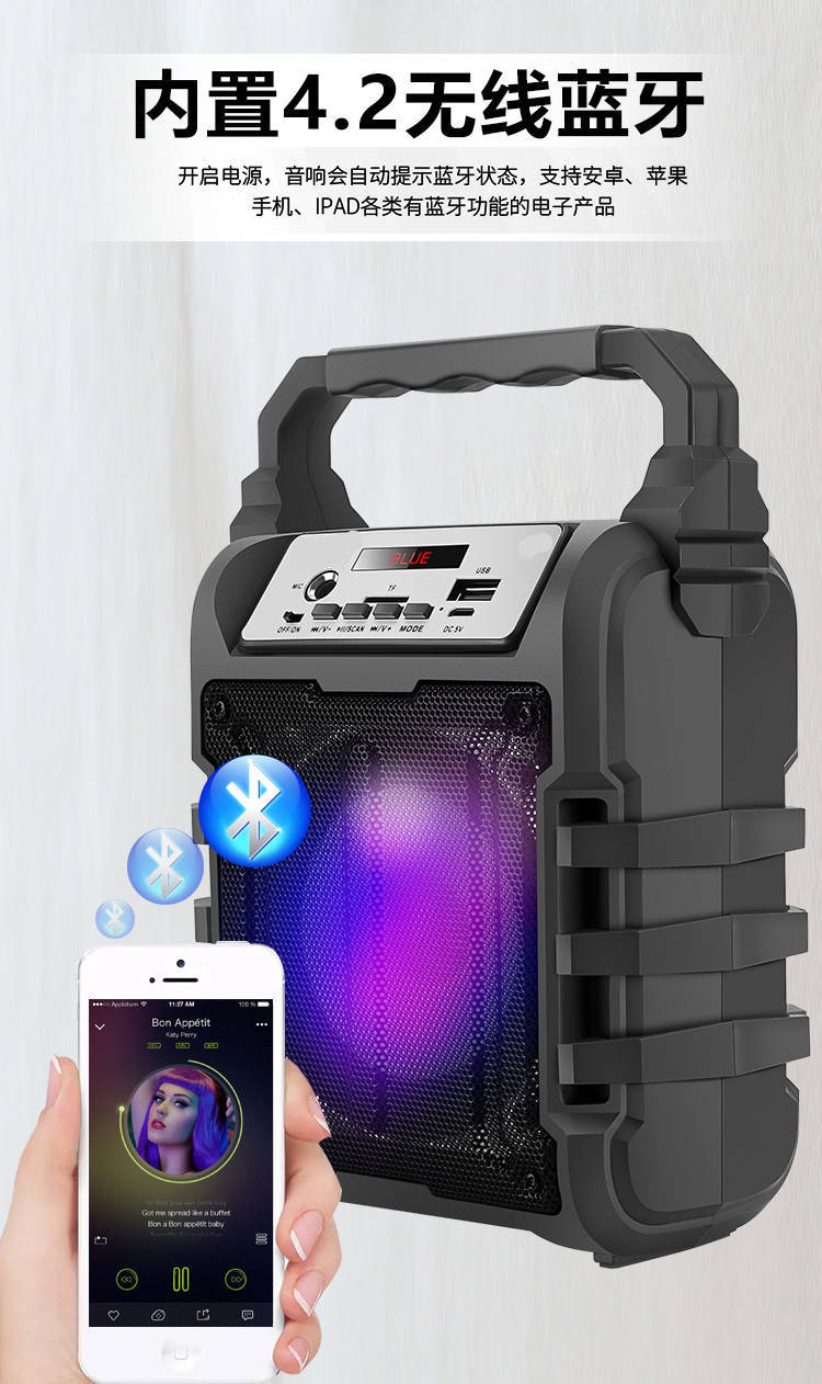 商品名稱:手提話筒音響 迷你低音炮 無線藍牙音箱 戶外便攜廣場舞