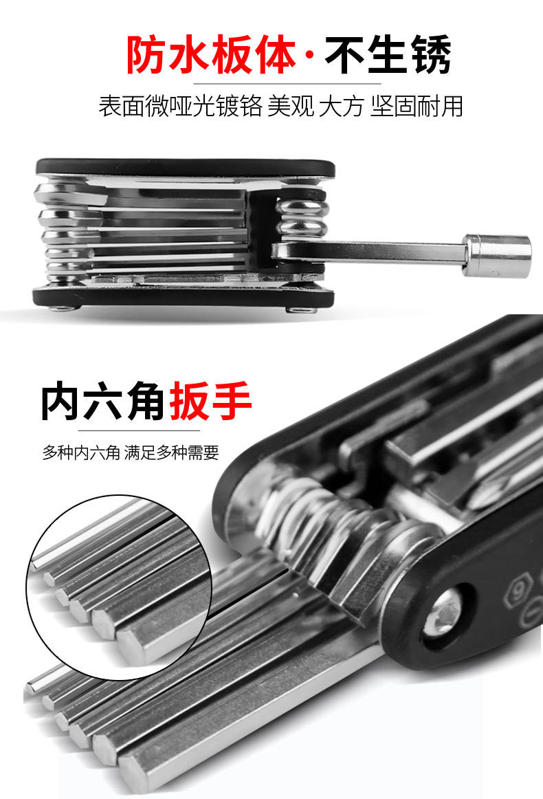 商品名稱:山地自行車維修工具便攜折疊內(nèi)六角螺絲刀套筒扳手多功能補(bǔ)胎組合