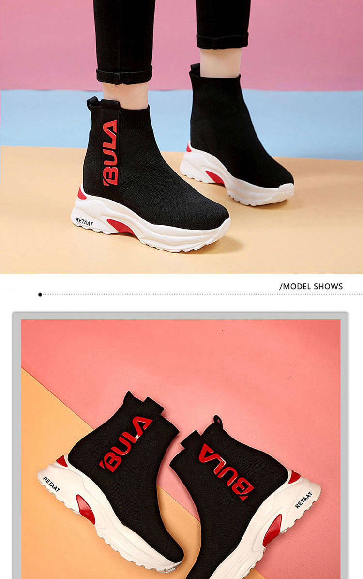 2019秋季高幫運(yùn)動(dòng)襪子鞋女學(xué)生彈力韓版厚底內(nèi)增高休閑鞋