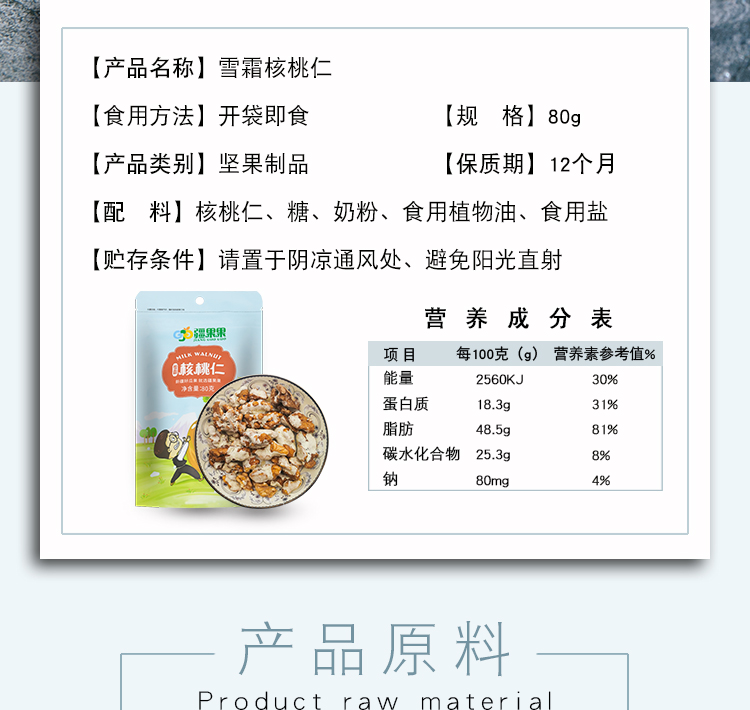 商品名稱:新疆 喀什 疆果果 雪霜核桃仁 80g/袋 核桃