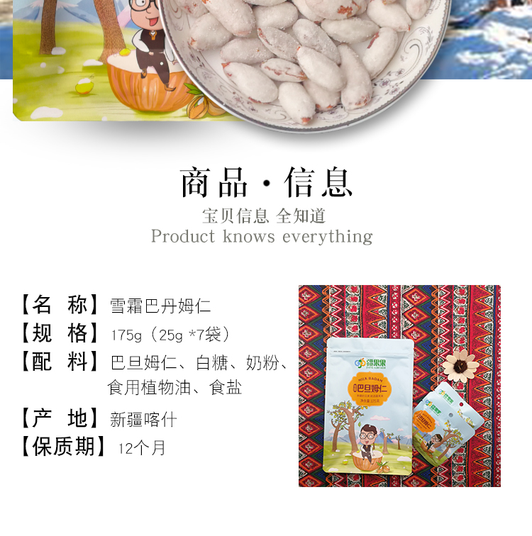 商品名稱:新疆 喀什 疆果果 雪霜巴旦木仁 175/袋 巴旦木