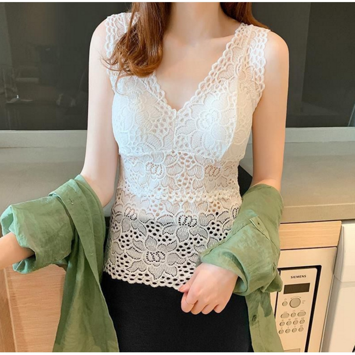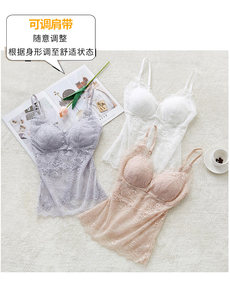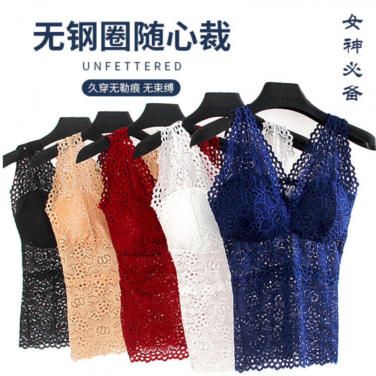 V領(lǐng)蕾絲吊帶女性感打底百搭背心修身顯瘦花邊內(nèi)衣美背抹胸帶胸墊