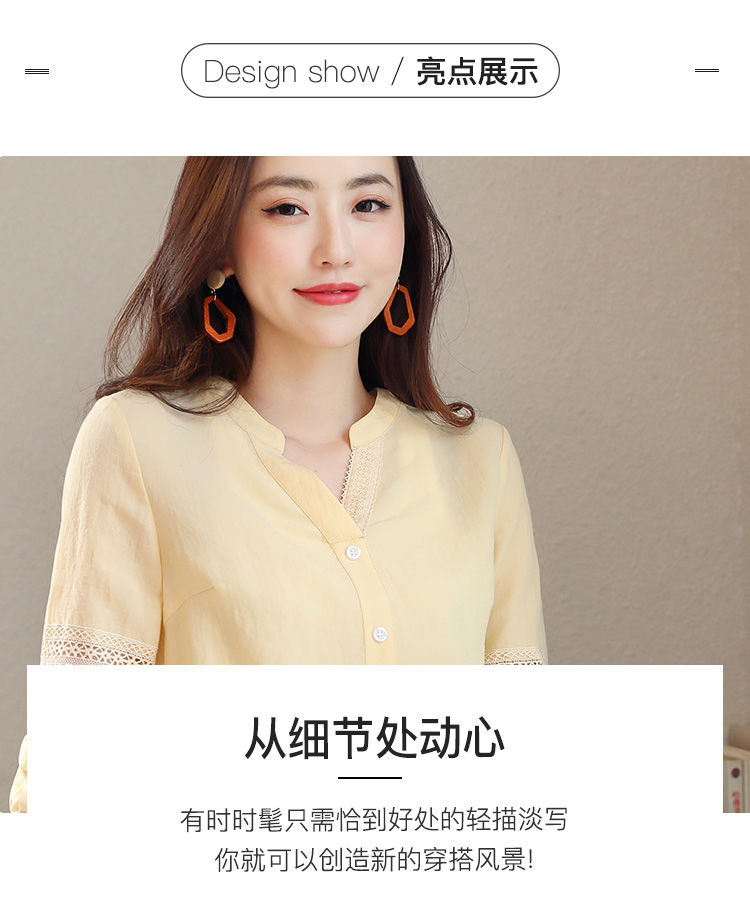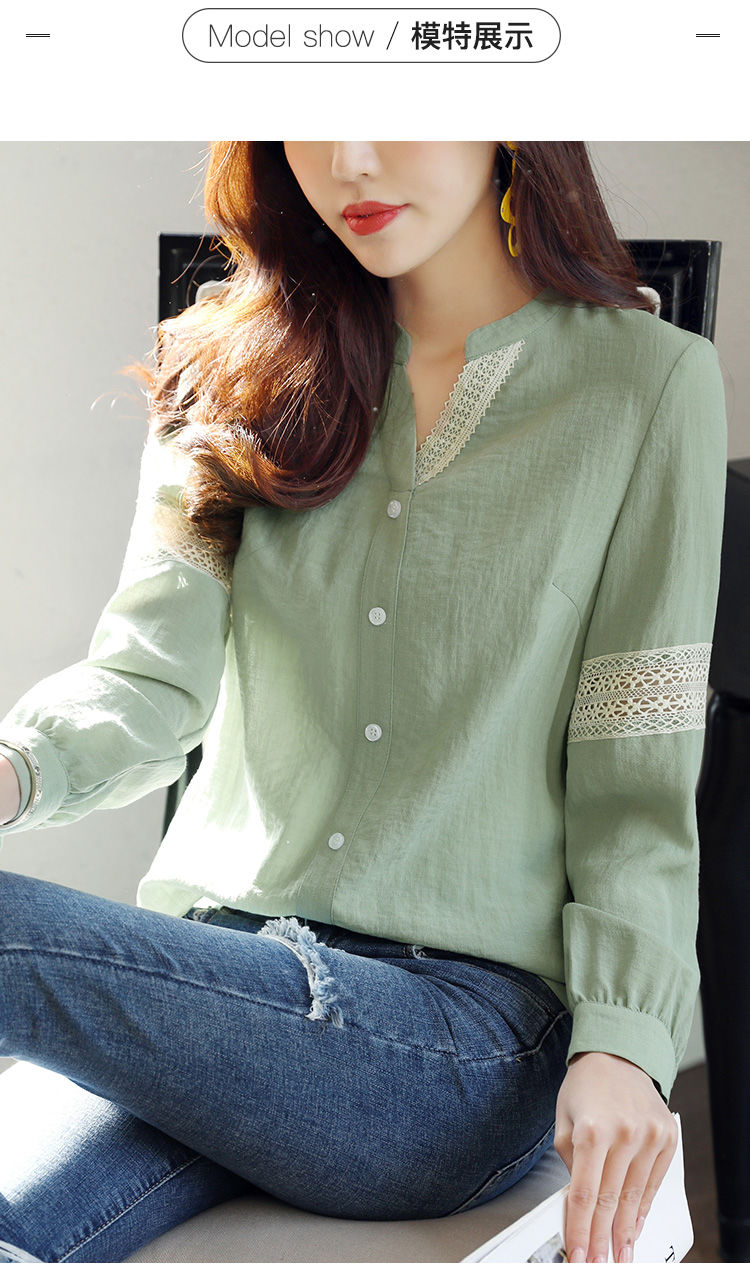 商品名稱:2020年春季新品女款韓版時尚百搭甜美拼接花邊V領襯衫