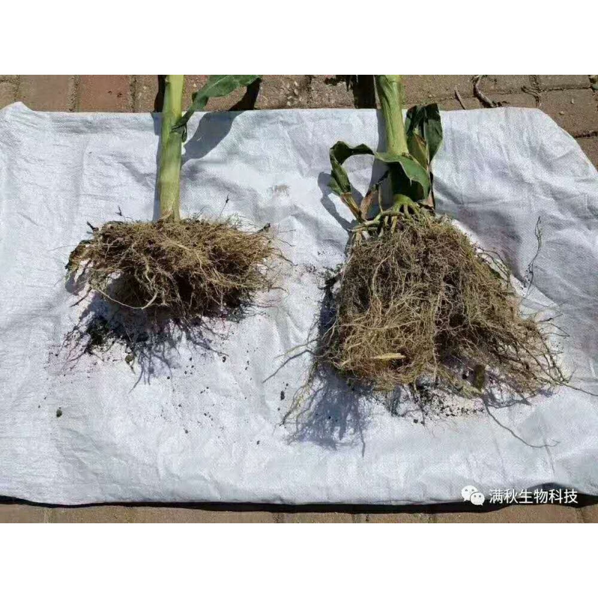 注意看使用長(zhǎng)滿秋生物菌劑和未使用長(zhǎng)滿秋生物菌劑農(nóng)作物差別