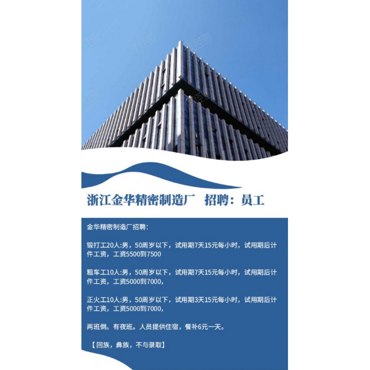 鍛打工20人:男,50周歲以下,試用期7天15元每小時(shí),試用期后計(jì)件工資,工資5500到7500