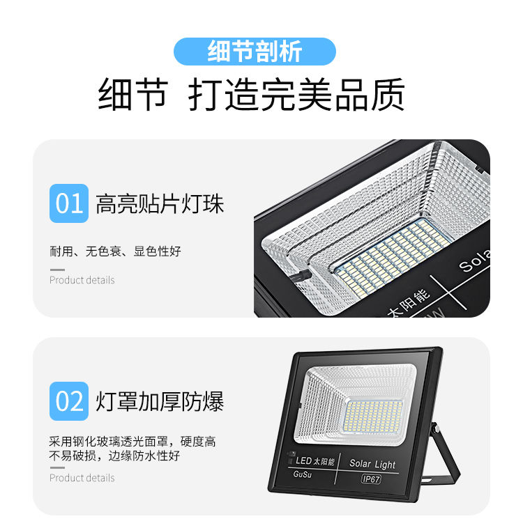 商品名稱:太陽(yáng)能燈家用戶外庭院燈led超亮防水投光燈室內(nèi)外新農(nóng)村照明路燈