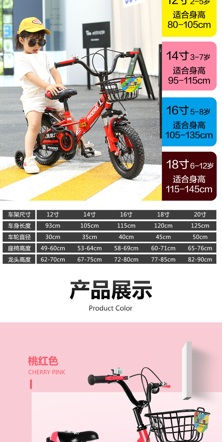 商品名稱:鳳凰兒童自行車男孩2-3-4-6-7-10歲寶寶女孩腳踏單車小孩折疊童車