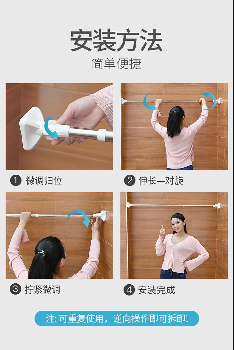 商品名稱:窗簾桿免打孔晾衣桿伸縮桿曬衣桿浴簾布桿套裝伸縮棍撐衣桿衣柜桿