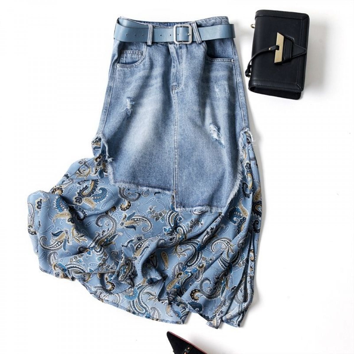 商品名稱:【專柜品質(zhì)】天絲牛仔裙半身裙女雪紡印花不規(guī)則時(shí)尚中長半裙