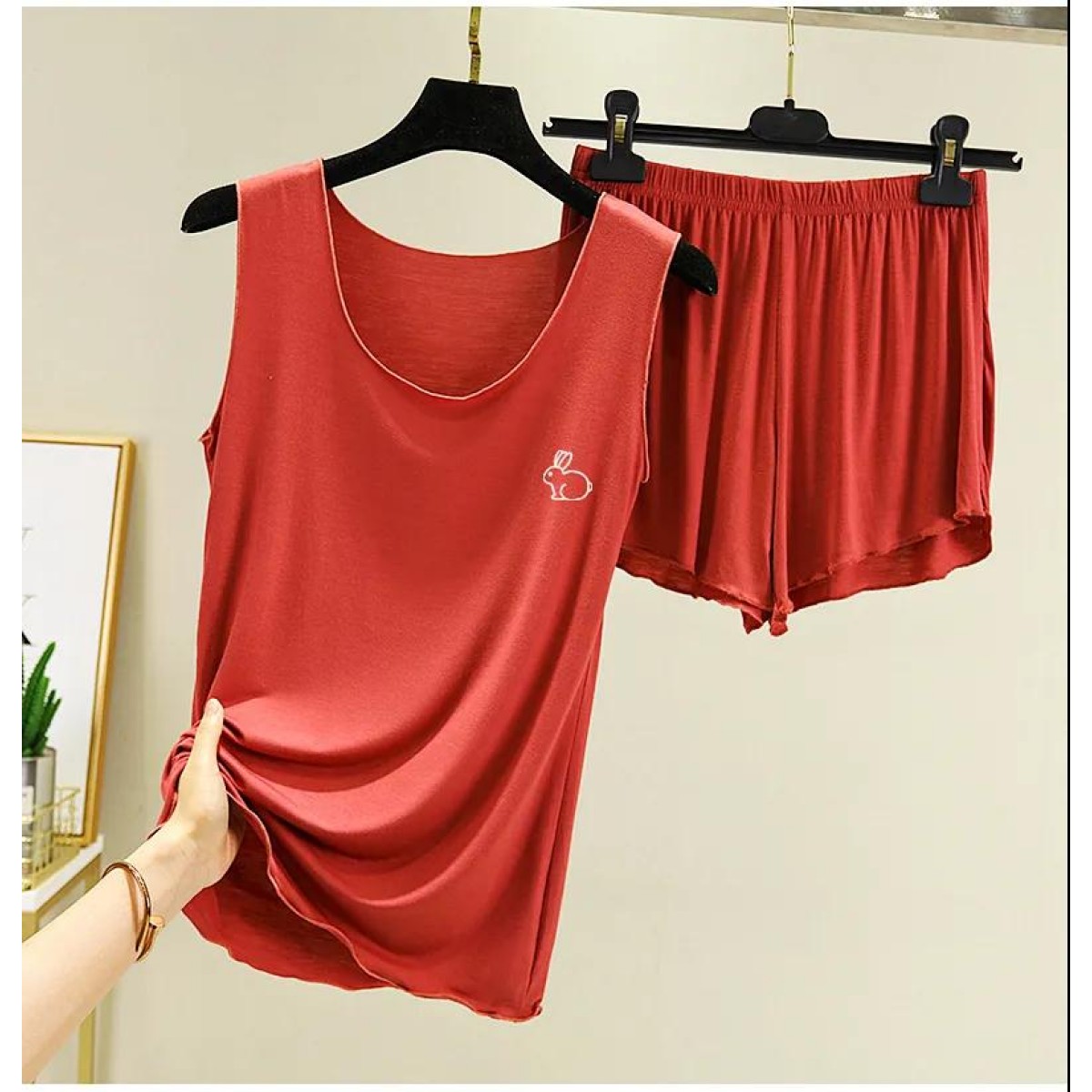 商品名稱:莫代爾吊帶背心女夏內(nèi)搭居家兩件套大碼寬松睡衣打底薄款無袖上衣