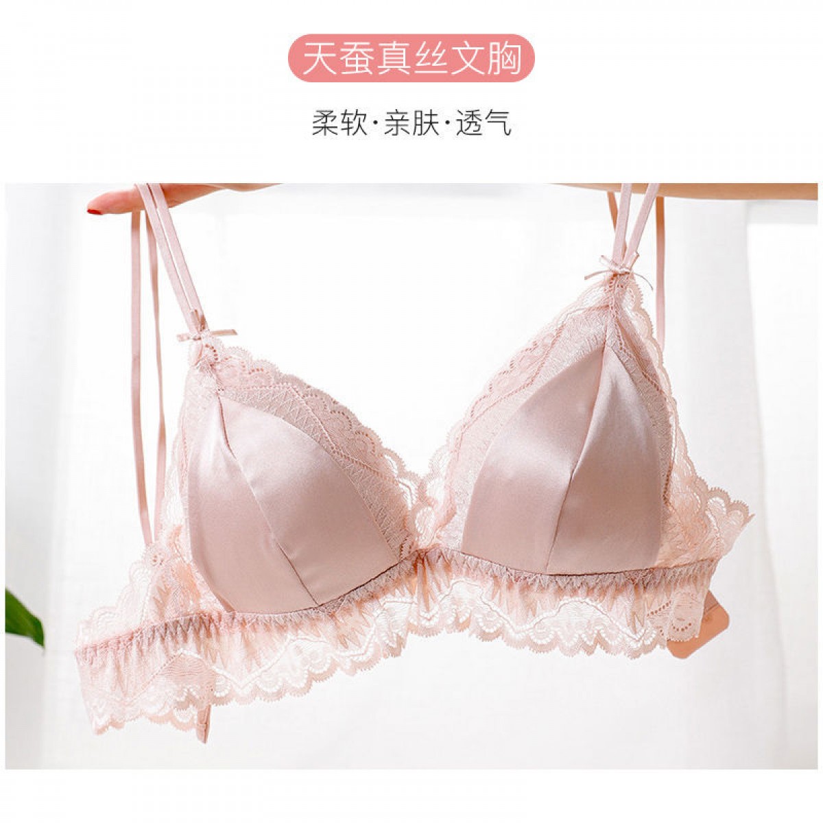 商品名稱:婷美無鋼圈天蠶真絲文胸法式性感三角杯內(nèi)衣蕾絲細(xì)帶薄款女士?jī)?nèi)衣