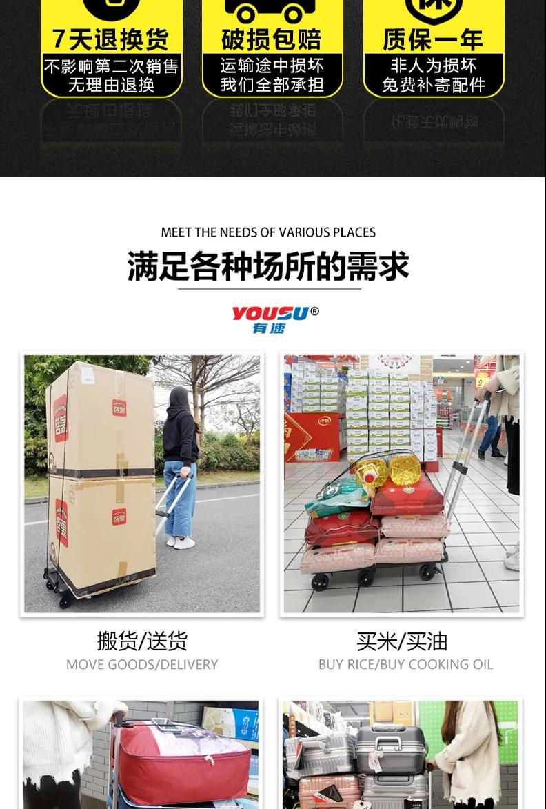 商品名稱:手拉車?yán)瓧U車家用小拖車折疊便攜小推車?yán)浭滞栖囏洶徇\(yùn)車行李車