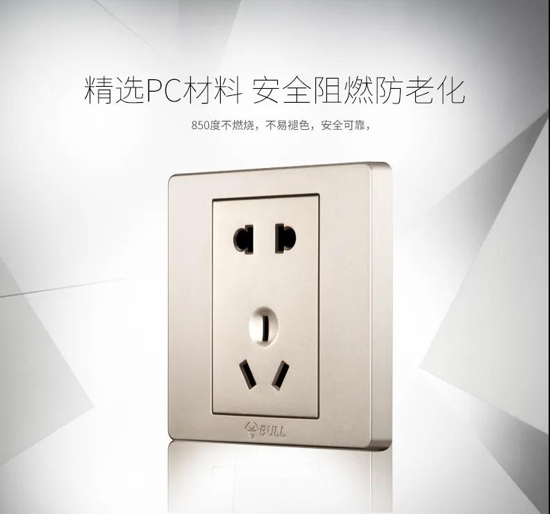 商品名稱:公牛開關(guān)插座面板家用香檳金開關(guān)墻壁式86型正品暗裝帶5五孔多孔