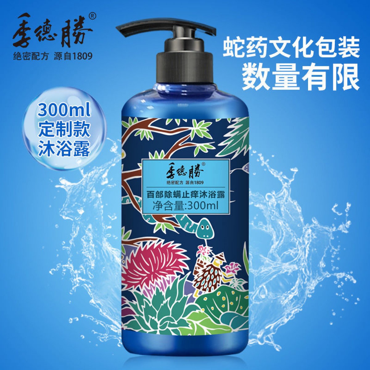 商品名稱:季德勝百部草本植物除螨止癢沐浴露全身洗澡后背清痘控油沐浴液300ml